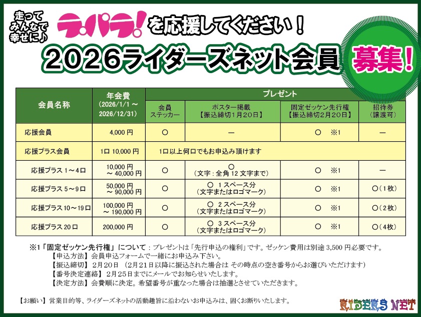 (*ラパラを応援するための会員です。走行イベントには会員にならなくても参加できます)